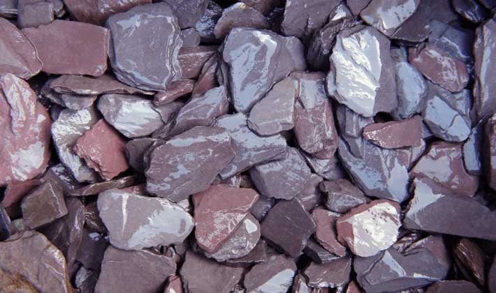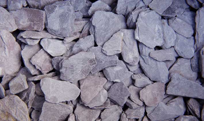 A classic landscaping favourite plum coloured slate from North Wales graded from 30mm to 50mm